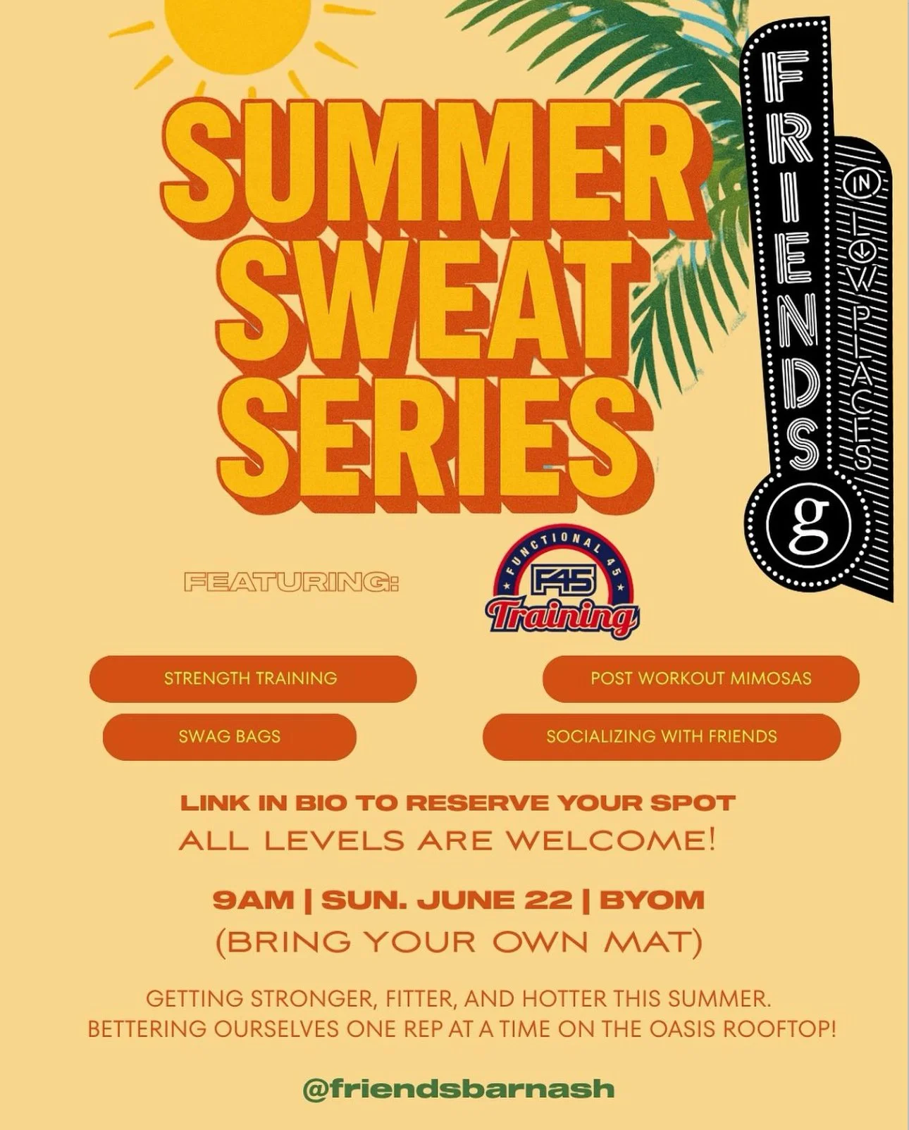 Join us for the Summer Sweat Series on Sunday, June 22 at 9AM on the Oasis Rooftop with @f45_training_eastnashville !